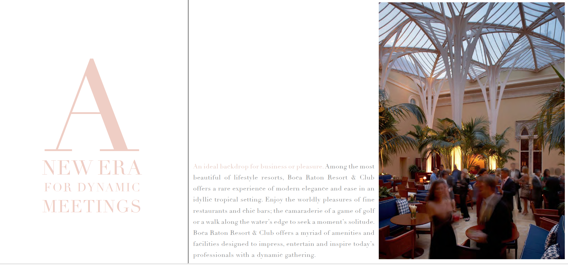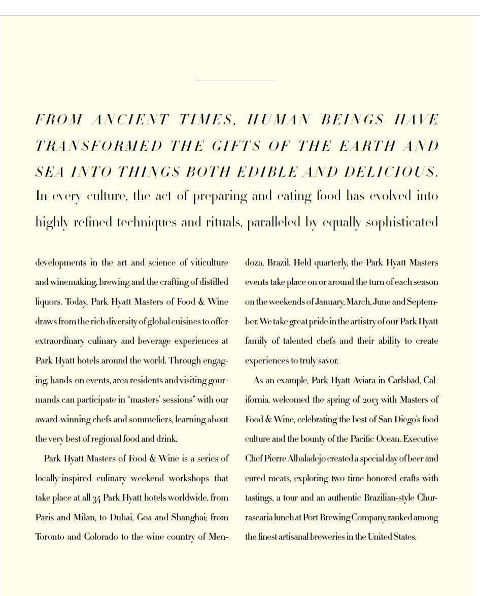 Above (clockwise): print brochure for Boca Raton Resort & Club, design by Vanderbyl Design; “Masters of Food & Wine” book for Park Hyatt, design by Regina Rubino; print and online collateral for Shorenstein, design by Looking LA; web site for Period Restoration, design by Deanna Kuhlmann-Leavitt (KLI).